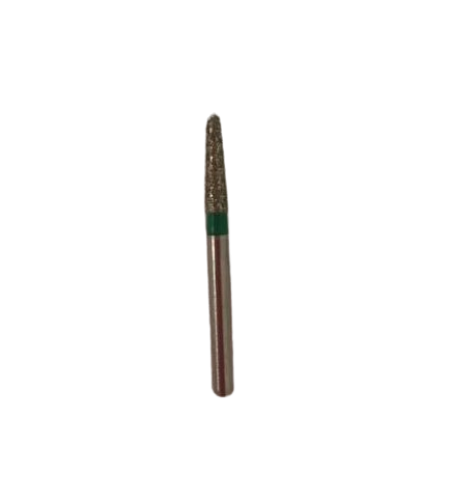 Инструмент с конусовидной рабочей частью 1,8 мм диаметром и крупной фракцией алмазной крошки 125–150 мкм гарантирует быстрый и ровный рез. Стальной хвостовик надежно фиксируется в наконечнике, выдерживая до 450 тысяч оборотов в минуту без биения.