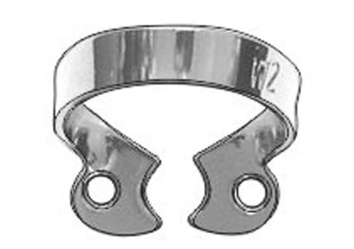 Кламп № W2 ТОР ВМ предназначен для крепления коффердама на премолярах с поврежденной коронковой частью. Плоские щечки сориентированы в горизонтальном направлении, что позволяет надежно закреплять его на зубе.